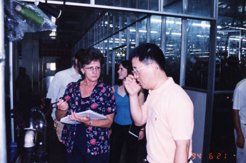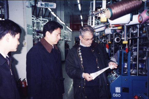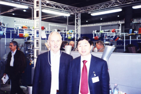 董事長(zhǎng)和金頭JOHN MORETZ 金頭莫瑞開(kāi)發(fā)經(jīng)理John 在襪業(yè)年會(huì)合影