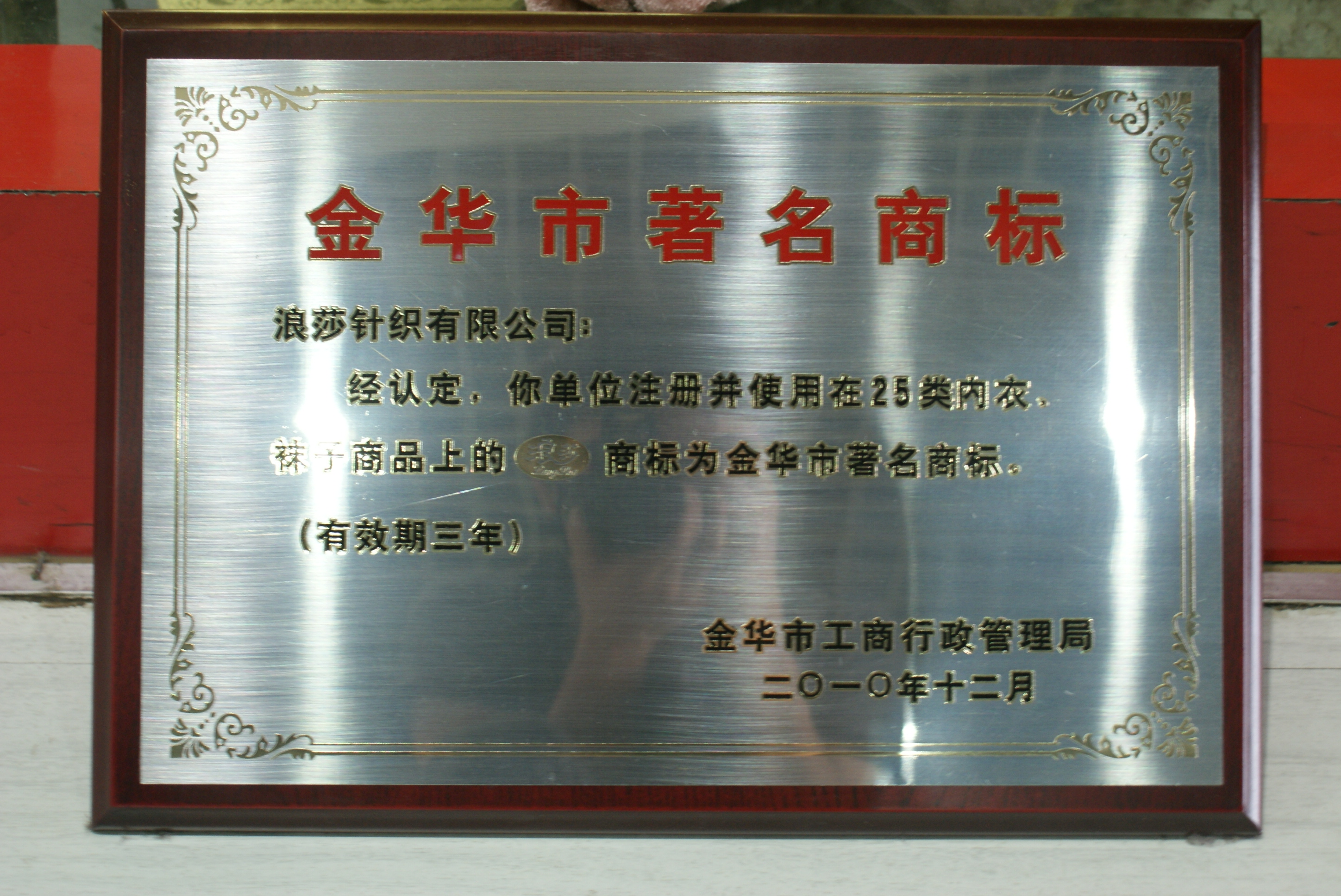 公司絲襪榮獲“金華名牌產(chǎn)品”稱號(hào)