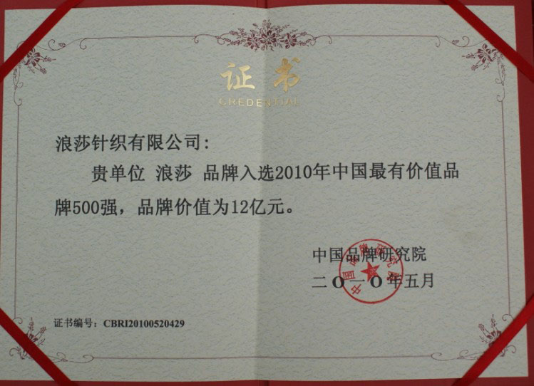 “浪莎”品牌入選2010年中國(guó)最有極致品牌500強(qiáng)