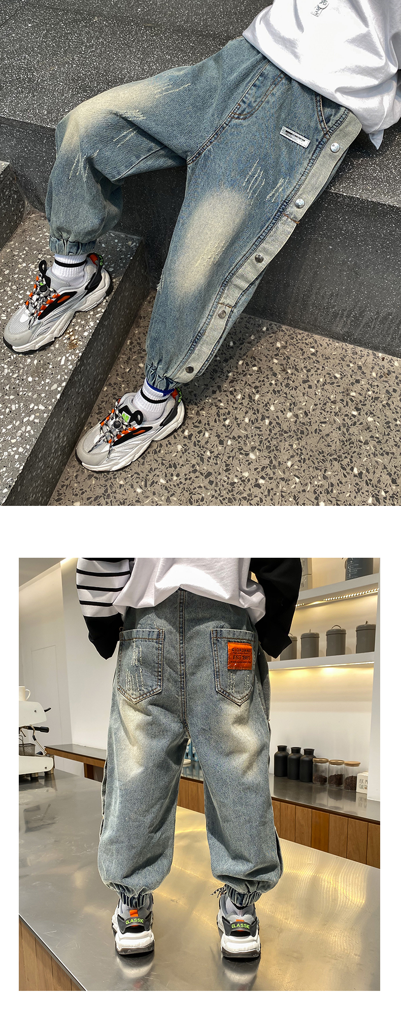 童裝男童洋氣邊扣牛仔長(zhǎng)褲兒童春夏褲子2021春裝新款中大童韓版潮