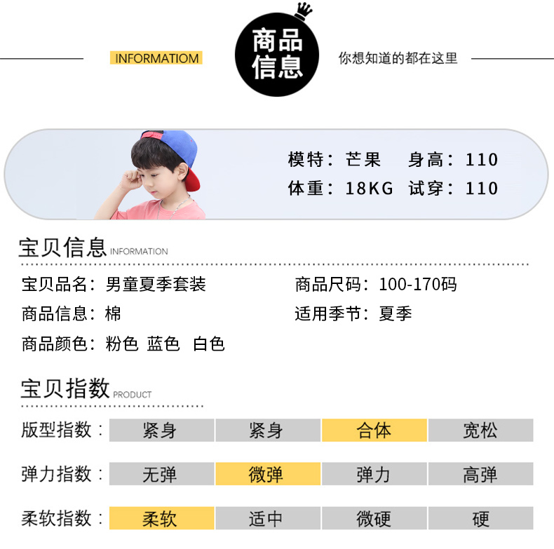 浪莎童裝兒童男童短袖套裝2021新款夏裝中大童兩件套寶寶卡通套裝