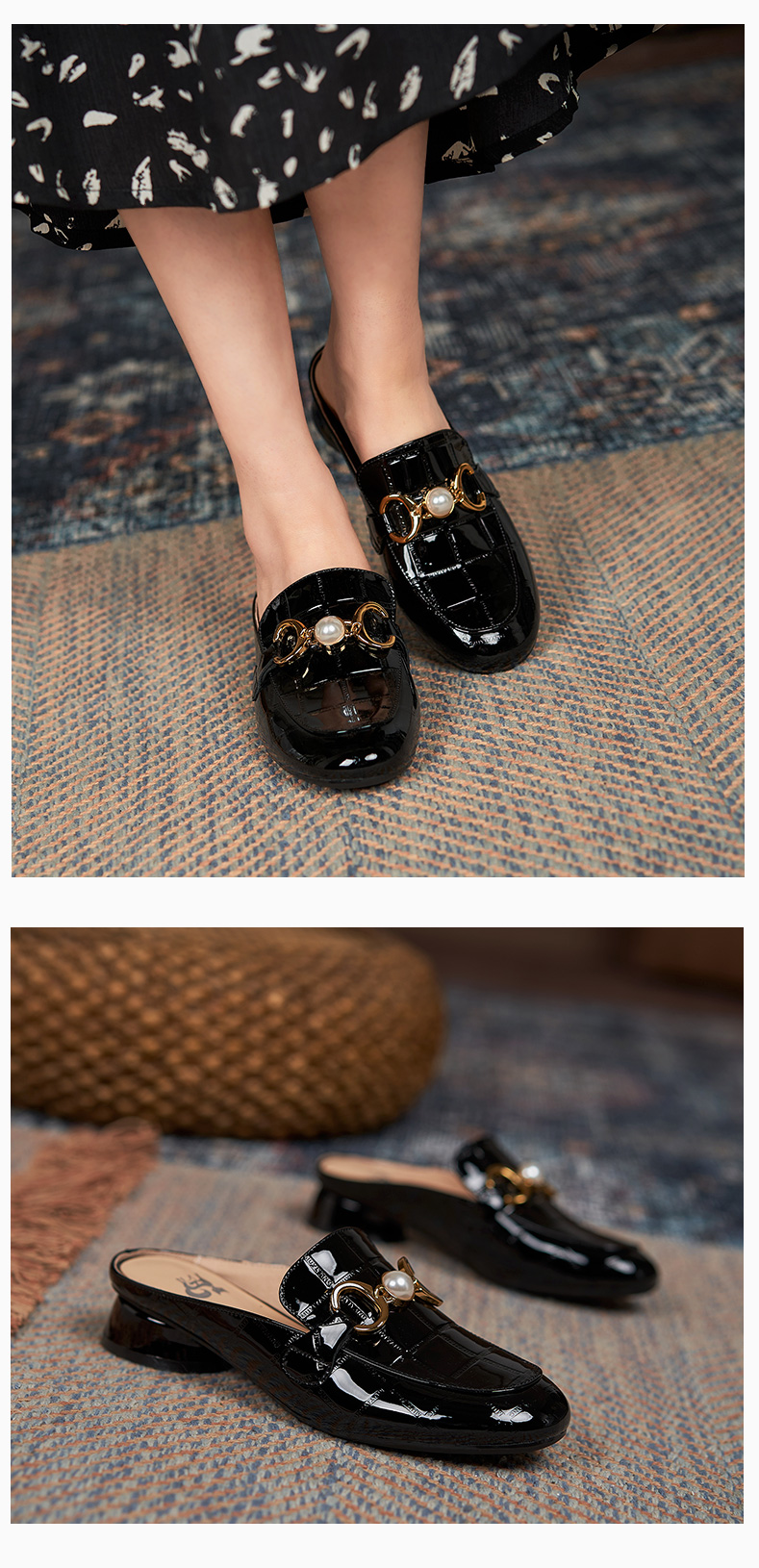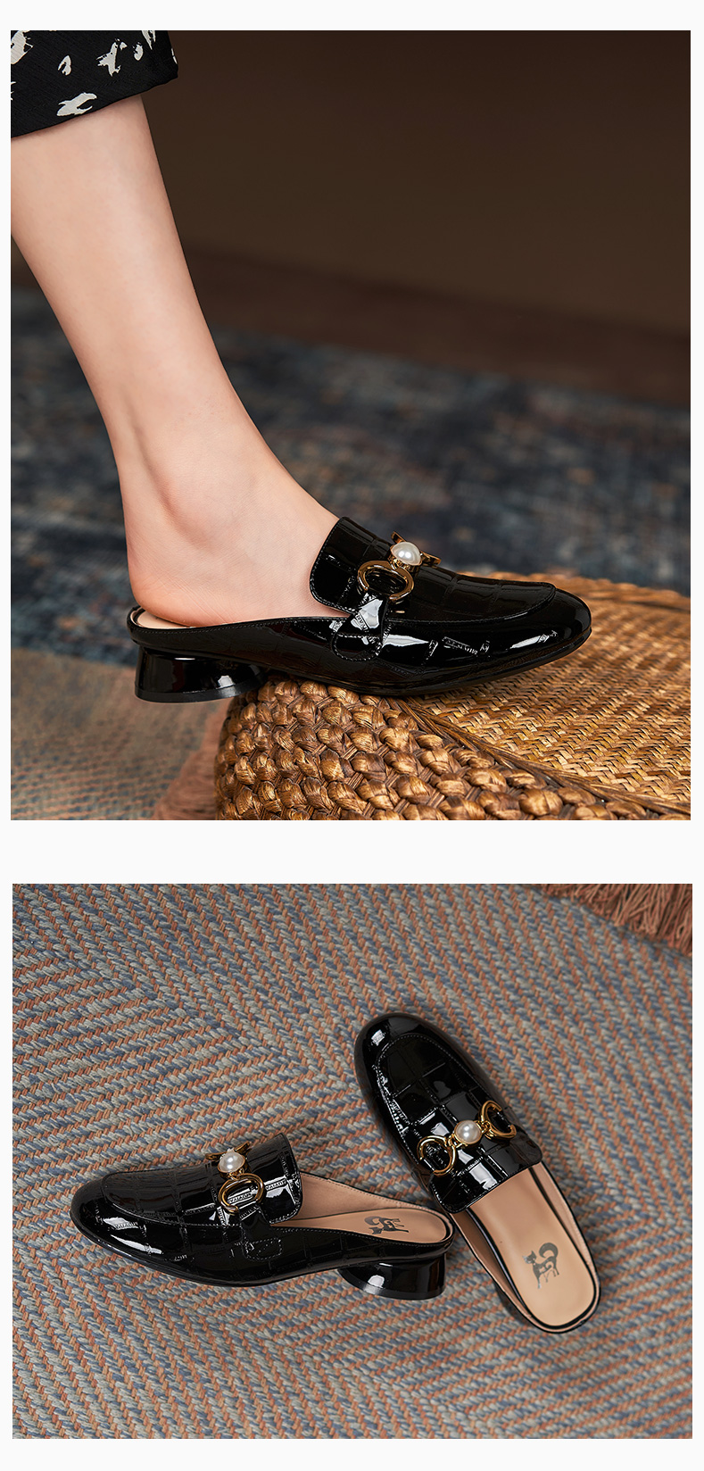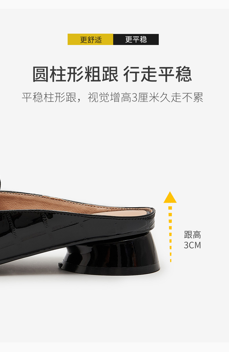 包頭半拖鞋女2021年新款夏季厚底外穿中跟懶人穆勒鞋時(shí)尚漆皮涼拖