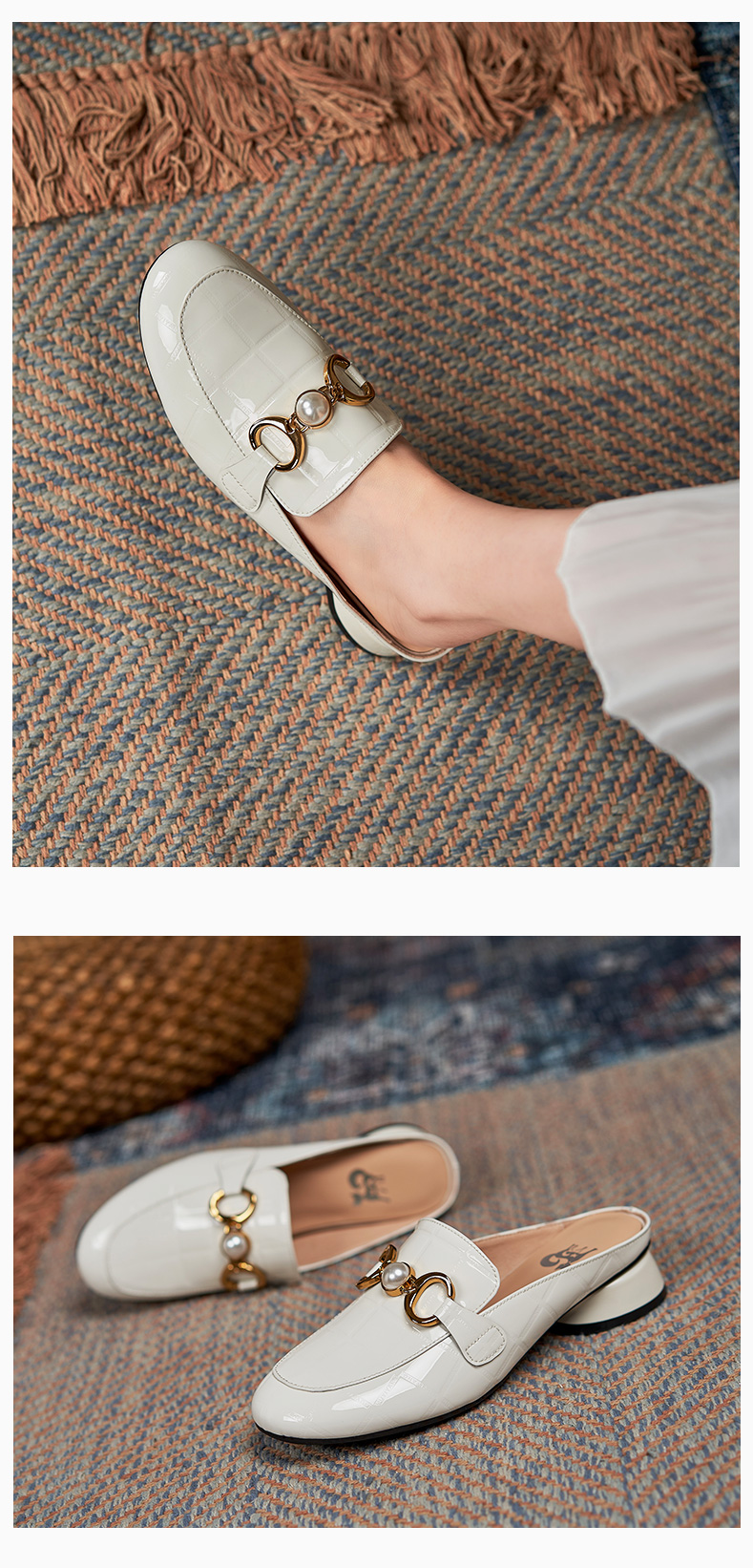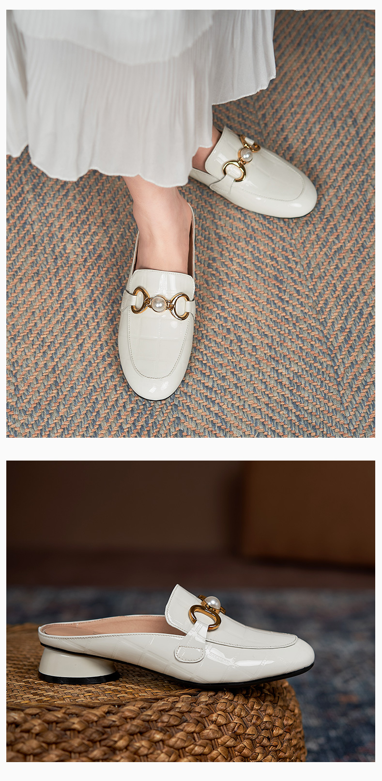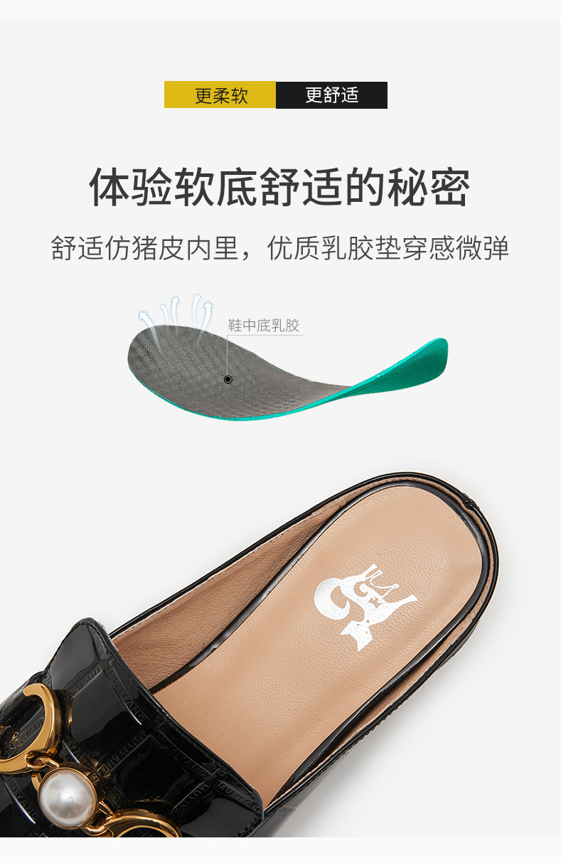包頭半拖鞋女2021年新款夏季厚底外穿中跟懶人穆勒鞋時(shí)尚漆皮涼拖
