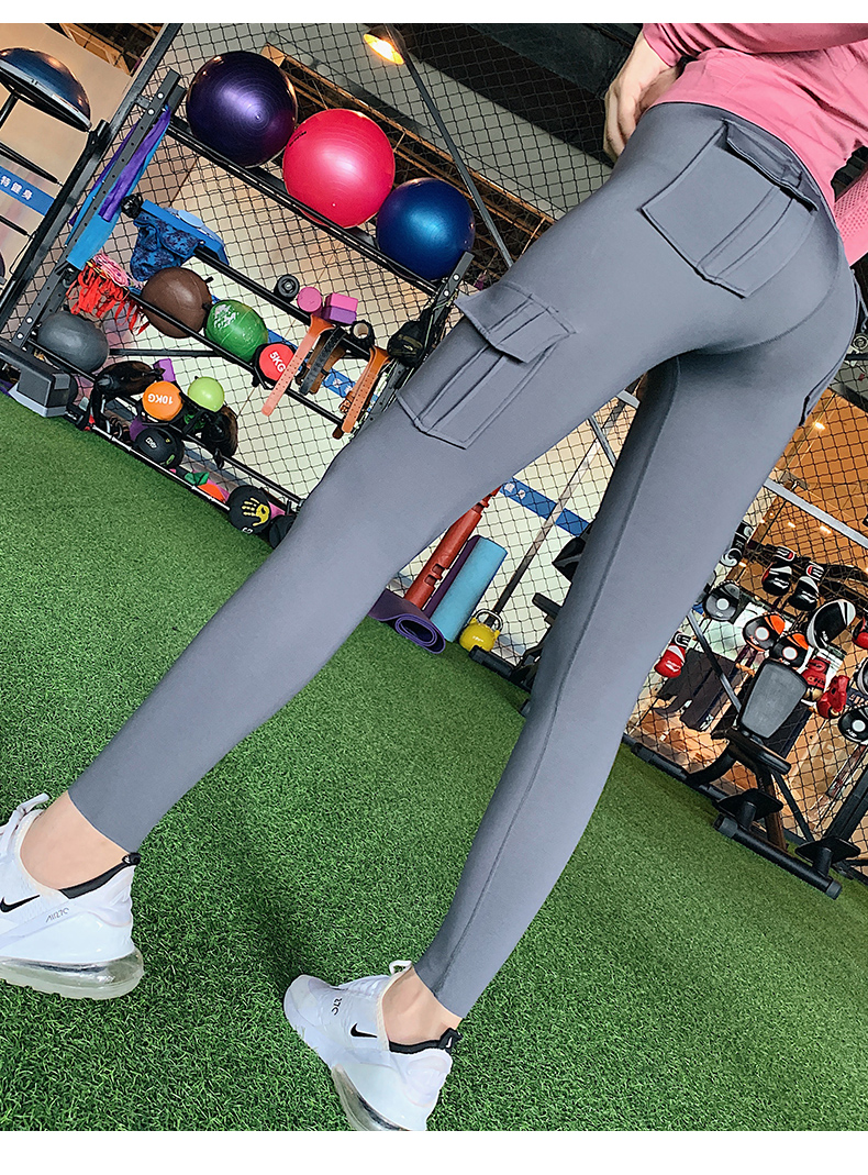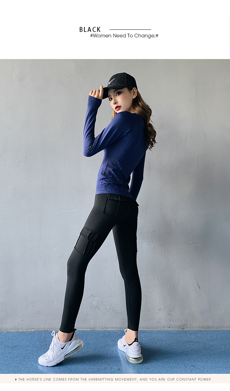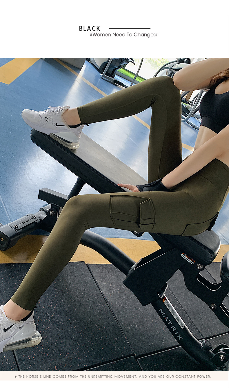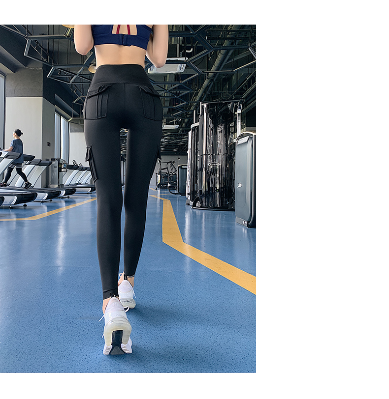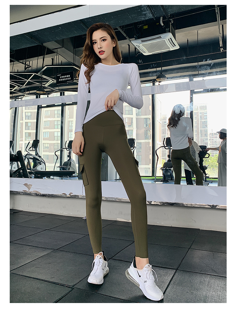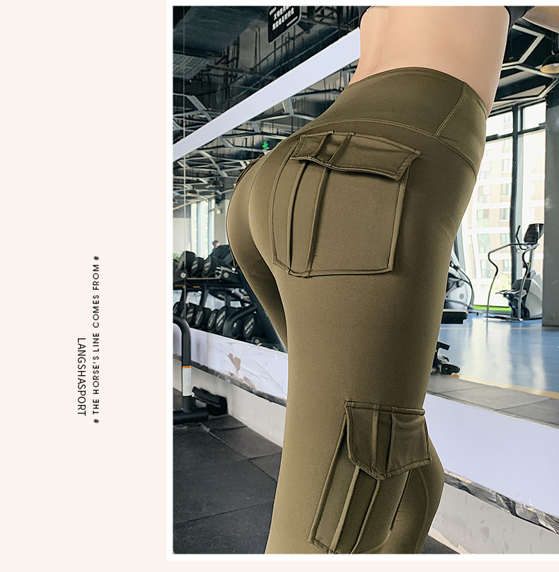 浪莎蜜桃健身褲女彈力緊身速干跑步運動褲提臀高腰收腹工裝瑜伽褲